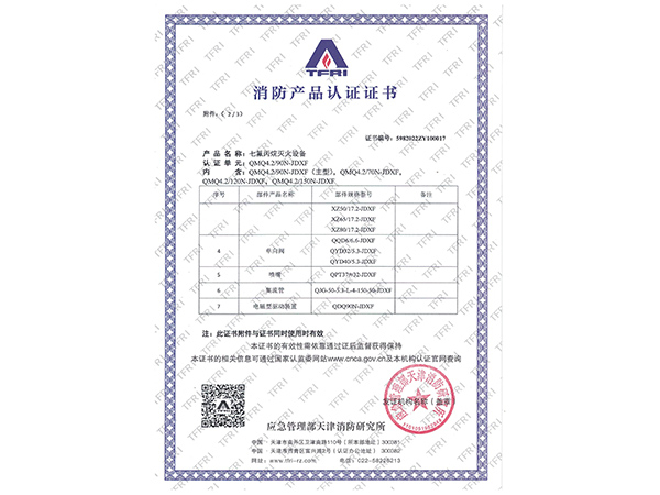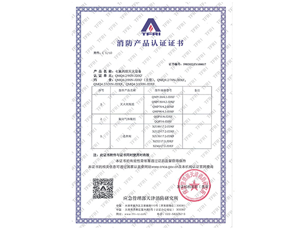 | 滅火劑名稱 | 七氟丙烷(HFC-227ea) |